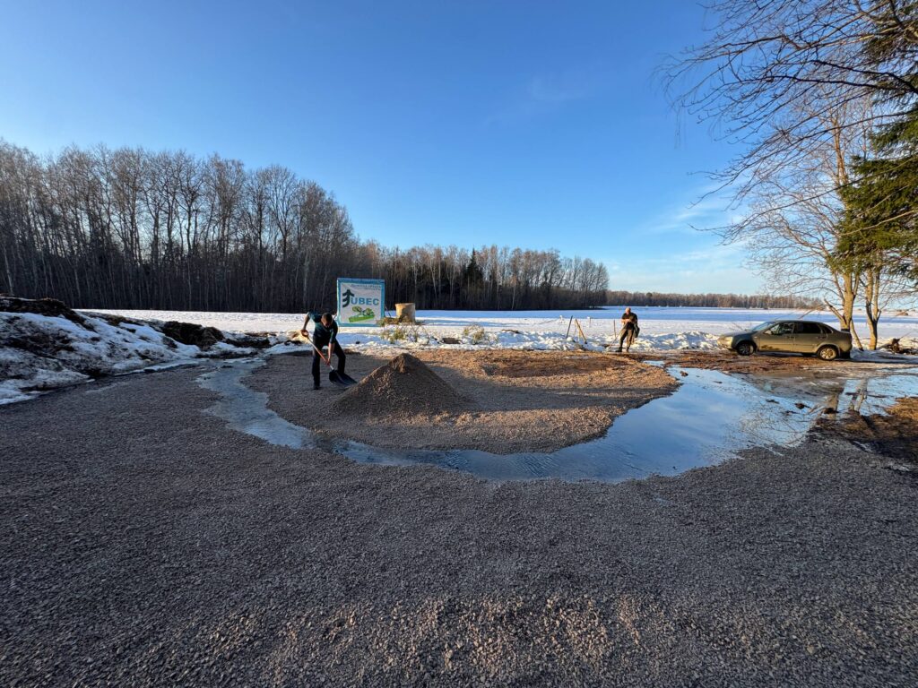 Немного осушили и подсыпали парковку. Просьба не жаться к краям, они очень жидкие!