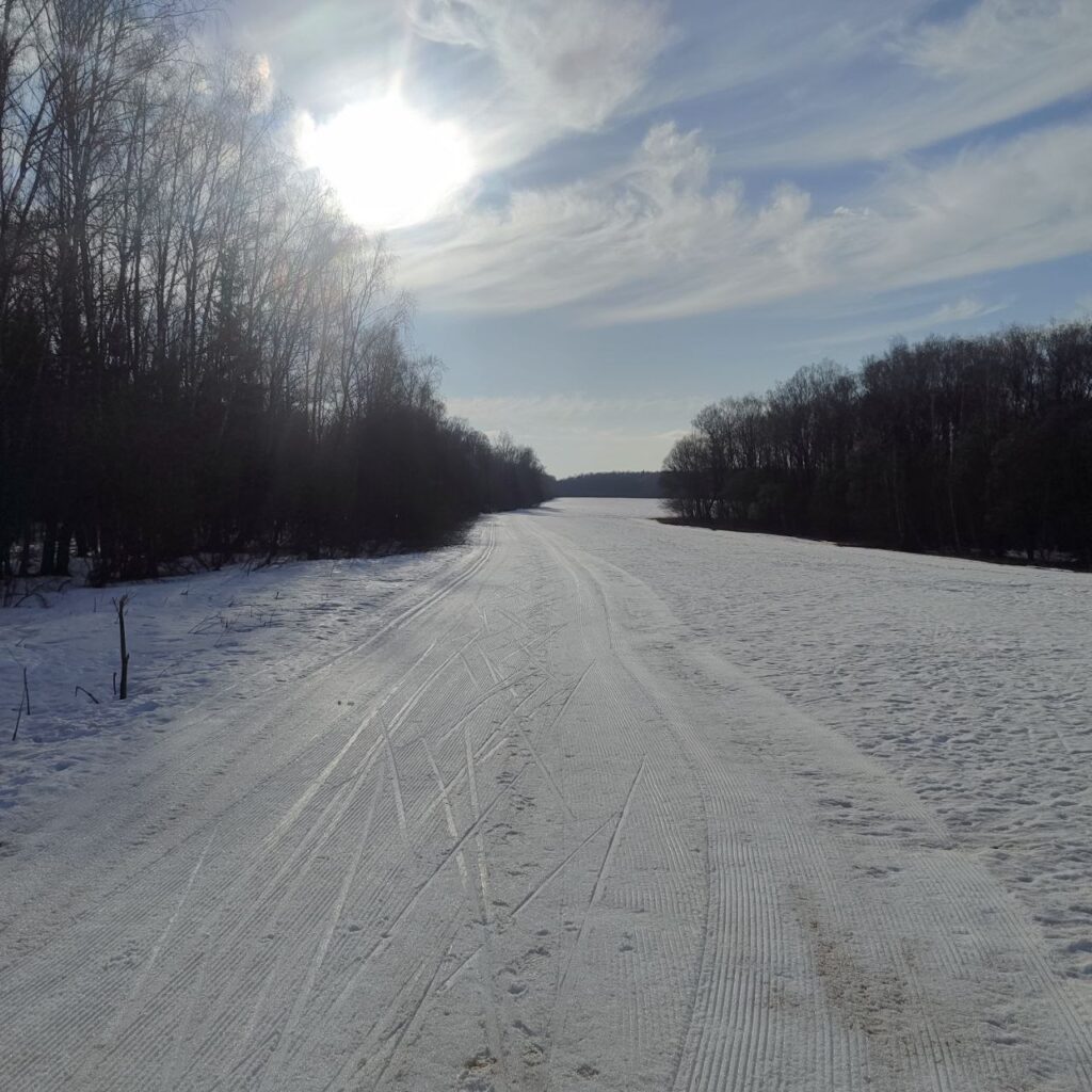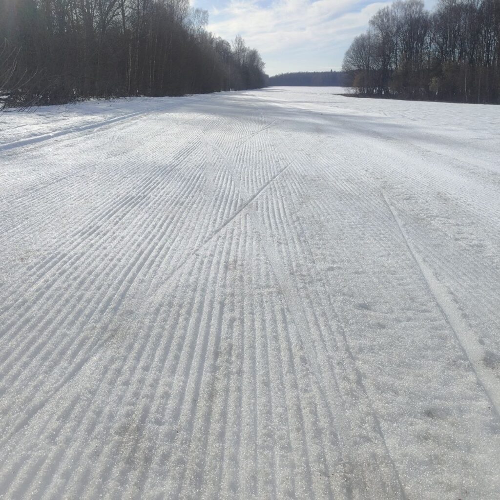 Освещенка, дорога до Зубца, два первых подъема на Биатлонке, Зубец и поле в 2 бороны. Нарезана лыжня по полю около Зубца.