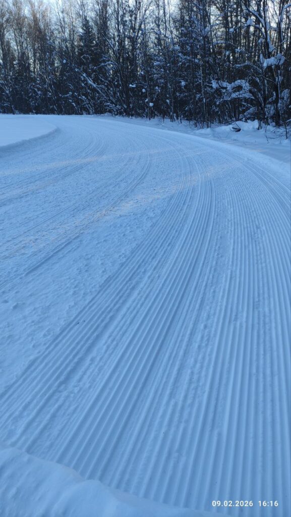 Накатано от тира до Биатлонки, Биатлонка (по треку 2026 года), дорога до Зубца, весь Зубец. Нарезана классика по разгонному кругу и Зубцу полностью.