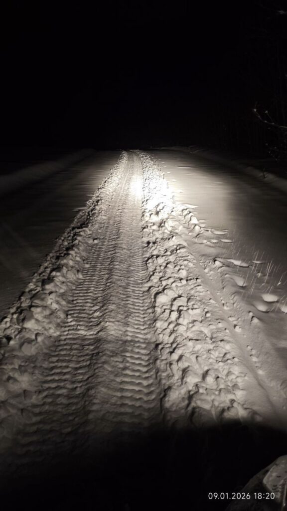 Константин Ляхков с Сергеем Крайновым в ночь опресовали трассу. Теперь можно до Зубца добраться своим ходом от тира (около него тоже накатано) минуя пока карьер, по левому его берегу. Тир — до дороги в 2 бороны, от дороги, поле-Зубец-кишечник в 4 бороны. Но поля все переметает. Планируются дополнительные выезды.