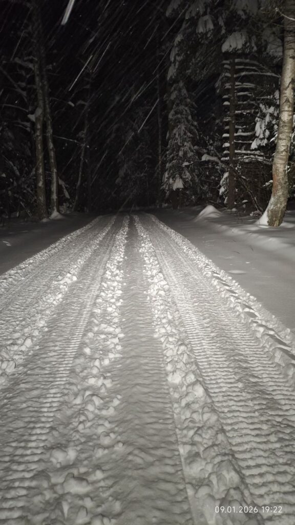 Биатлонка до дороги в 2 бороны, далее поле, Зубец, Кишечник в 4 бороны. И дальнейшая накатка планируется на 8.01.26. Погодные условия фантастически снежные! Стараемся подготовить трассу, чтоб все накатались вдоволь в праздничные выходные.